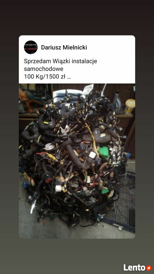 Sprzedam Wiązki instalacje samochodowe 100 Kg na początek.Możliwość stałej współpracy co jakiś czas kolejne partie.